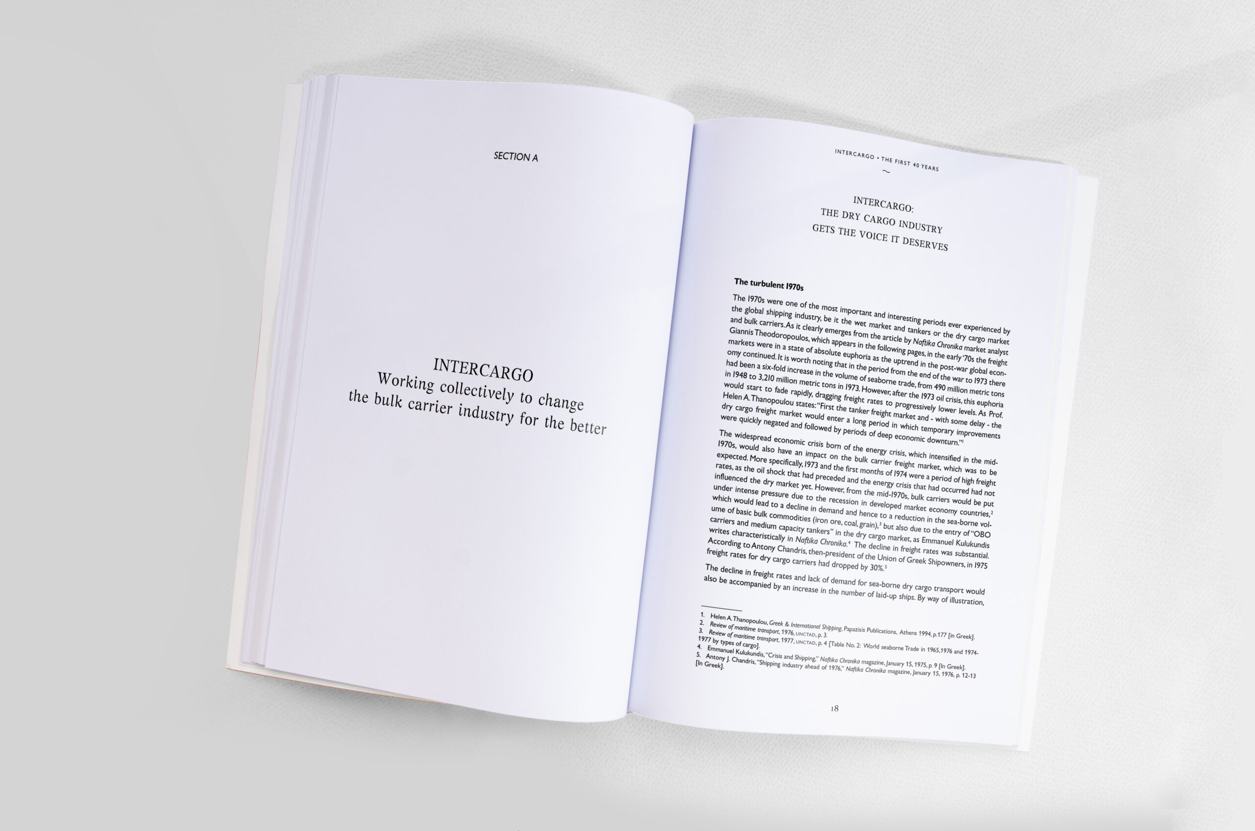 Η ειδική έκδοση με τίτλο «Intercargo, the first 40 years – Representing the Dry Bulk Cargo Shipping Industry since 1980» προσφέρει μία μοναδική ευκαιρία αναδρομής στα πως και στα γιατί της ίδρυσης μίας από τις πλέον σημαντικές ενώσεις της ναυτιλιακής βιομηχανίας, σε παγκόσμιο επίπεδο, της INTERCARGO.